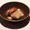 Da terra, gostámos muito do Jarrete De Vitela com batata, cebolinhas, bacon, castanhas e cogumelos de época, que conciliava de modo muito eufônico o sabor a tradição, aromas dos assados de Domingo e notas de modernidade sensorial; e da generosidade organoléptica do Lombo De Boi À Portuguesa, com molho à portuguesa, batata às rodelas e legumes salteados: um prato simples, quer na confecção que na apresentação, mas que nos enche a alma de conforto.