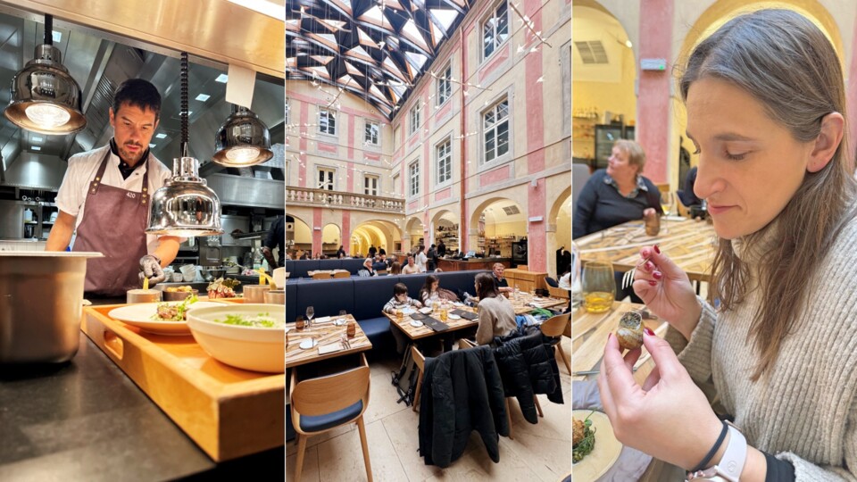 O 420 restaurant, com uma localização privilegiada mesmo em frente ao Orloj, aposta em combinações inesperadas e pratos visualmente impressionantes, numa sala muito bonita cheia de luz natural O spaetzle com queijo bryndza defumado e pipoca de trigo-sarraceno surpreende pela textura e pelo equilíbrio entre o cremoso e o crocante.