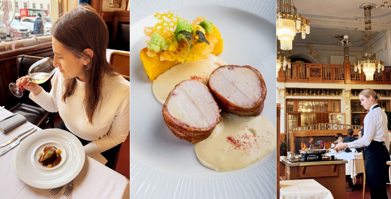No Obecní dům, o tal restaurante da Casa Municipal, a elegância da arquitetura Art Nouveau reflete-se na qualidade dos pratos. Entre os pratos que mais se destacaram, realço ainda o foie gras com geleia de vinho do Porto que surpreendeu pelo seu equilíbrio entre a untuosidade do fígado e a doçura intensa da redução, criando uma experiência rica, prazerosa e sofisticada.