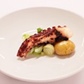 Das renovadas propostas gastronómicas destacamos nas entradas a riqueza marítima da Sopa de Santola; a originalidade e conforto da Sopa de camarão com espinafres; a elegância e tradição dos Bilharacos de alheira em sementes de papoila e maionese de pimentos; e a simplicidade salivante da Tosta de queijo chèvre com nozes, mel de urze e salada verde. Nos peixes gostei muito da mistura de mar e horta do Filete de Peixe galo em crosta de amêndoas e migas de tomate; e do Polvo no forno com batata a murro, chalotas e couve salteada em que os tentáculos crocantes por fora, quase que levemente confitados, eram complementados pelo fundo vegetal, fresco e perfumado da couve e pela ligeira doçura das chalotas.